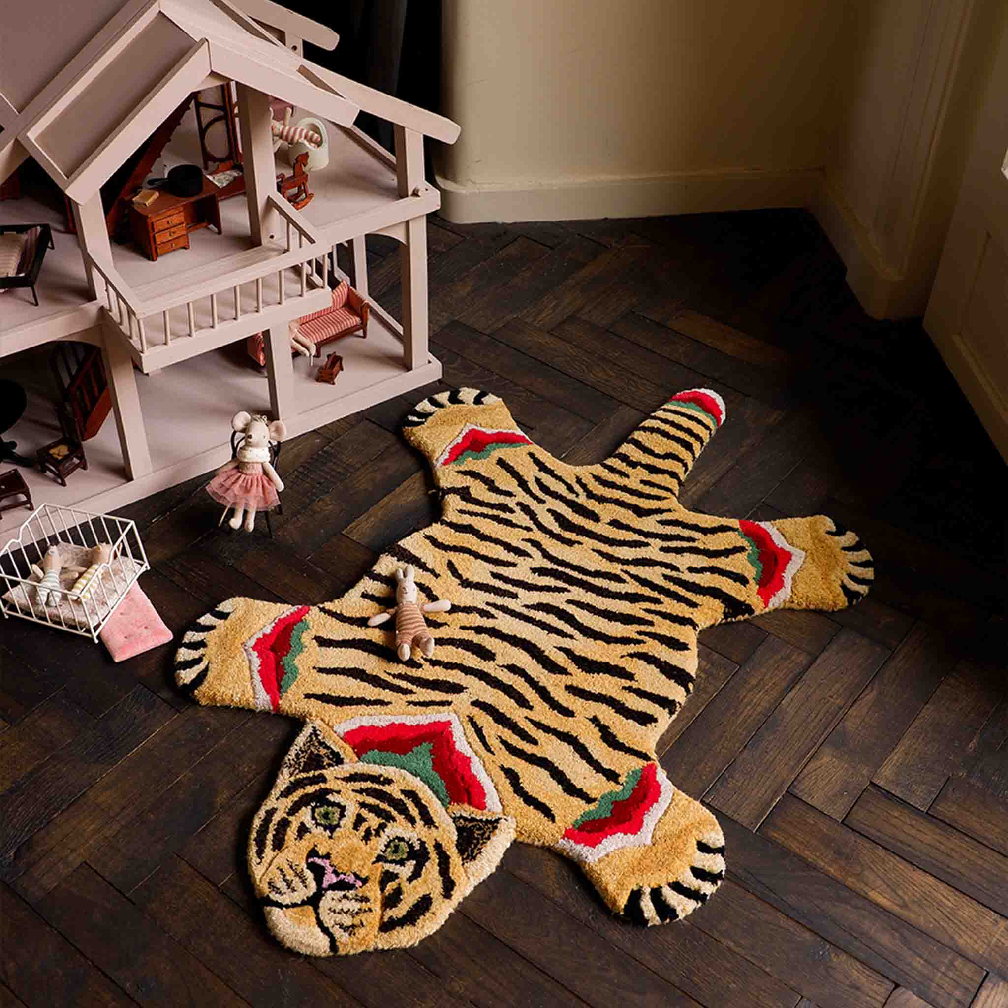 Add a touch of cheer to your room with our Bombay Tiger Rug. Handmade in India from 100% wool and featuring a cotton backing, this rug is not only beautiful, but also durable. Bring some exotic charm to your space with this unique piece.