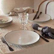 Contemporary and versatile, Augusta takes on a natural feeling, balancing a matte-beige surface with a black bold rim, which can be combined with the patterned designs to add an eclectic touch to each table setting. Whether there is a celebration or a simple gathering, Augusta provides a table suitable for all tastes.