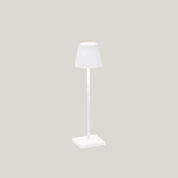 To recharge your Poldina Pro Micro lamp, plug the USB terminal on the charging base into a 5V-1A USB charging plug adaptor (not included) or a USB multi-port charging station. Place the lamp on the base. The translucent top will glow red while charging and turn green once the charging cycle is complete. A full charge takes 3-4 hours. The lamp should be removed from the charging cradle when the battery is fully charged.