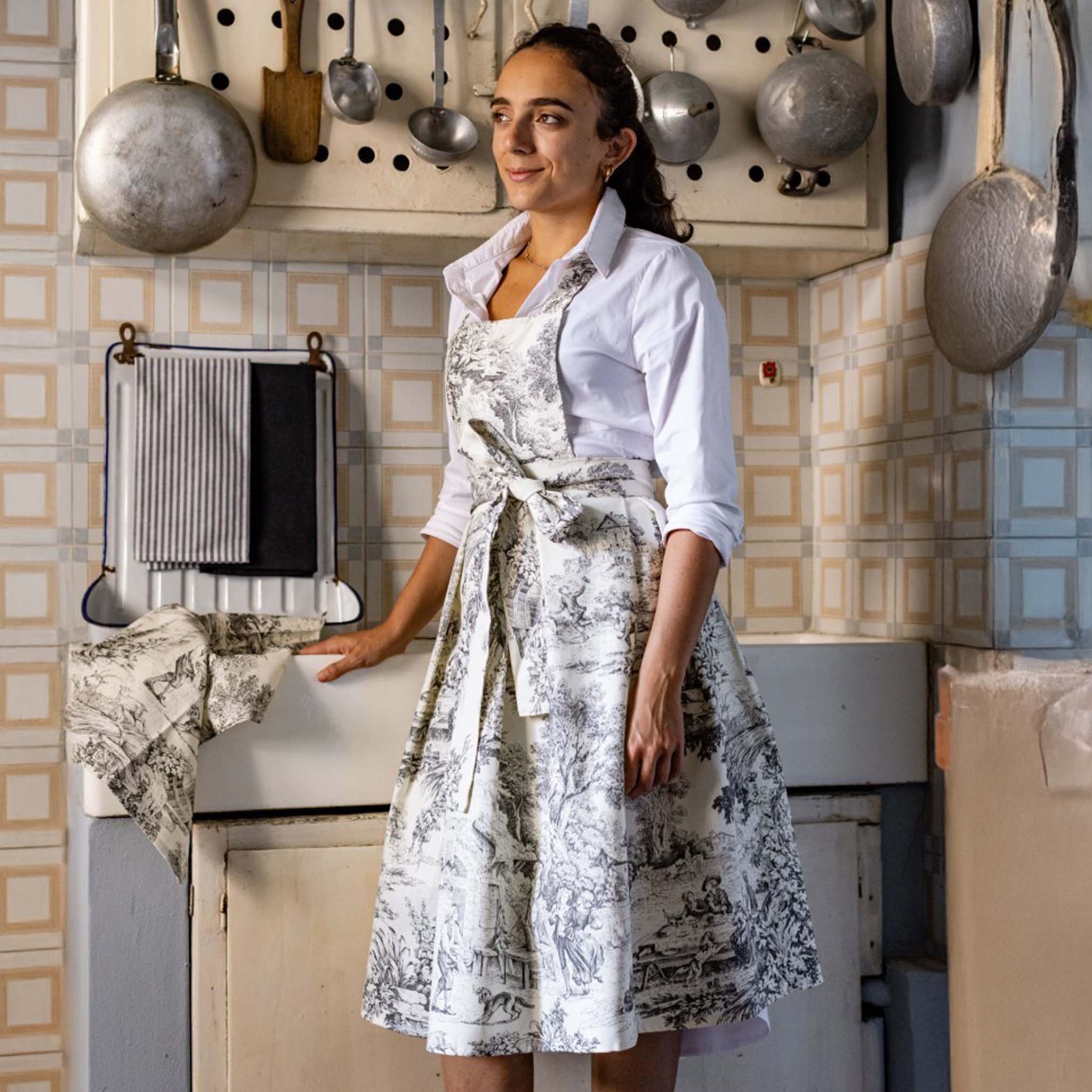A practical apron full of charm, inspired by timeless French style. Designed for those who love to cook with elegance—whether for daily life or hosting guests.