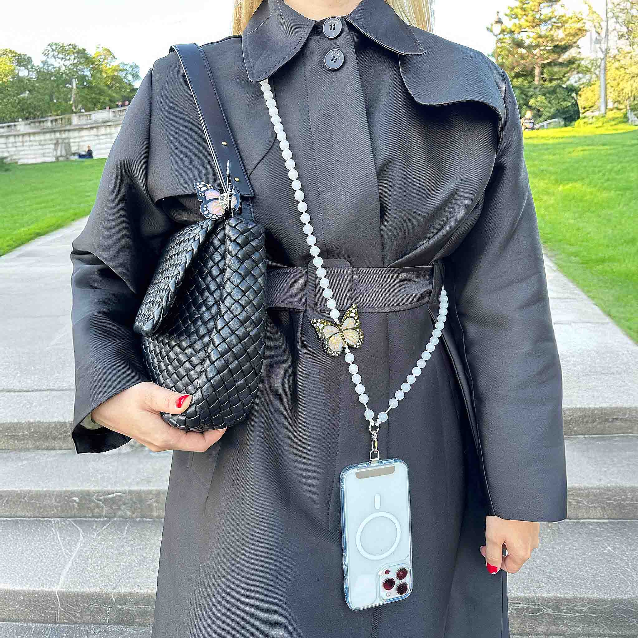 Available in two signature styles — Monarch Butterfly and Blue Eye — this original crossbody phone chain blends beauty, craftsmanship, and everyday functionality.